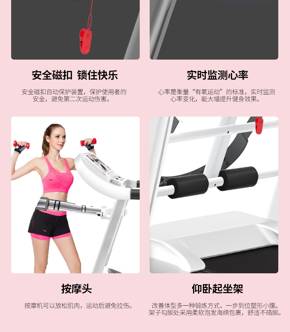 王爵ランニングマシン家庭用多機能ランニングマシン小型折りたたみ式静音室内ダイエット簡易走歩機豪華モデル金色+音楽/仰向け起床台/ダンベル/マッサージヘッド