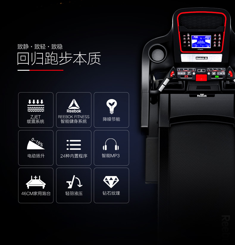 Reebok/锐歩ZJET 460ランニングマシン家庭用小型静音ダンピグ电动折りたみみた器材アダダス伞の下でブランド